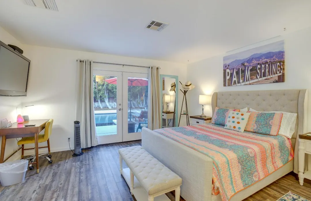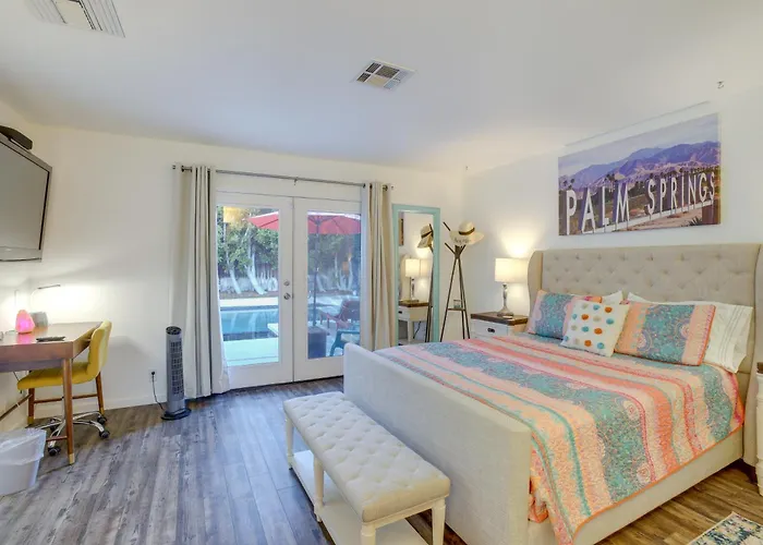 The 2-bedroom Palm Springs Getaway With Outdoor Pool! Villa is located only 5 minutes' walk from Palm Springs Stadium and features a private swimming pool and a patio for a relaxing stay. Located in front of Palm Springs Power Baseball, the property features ping pong.